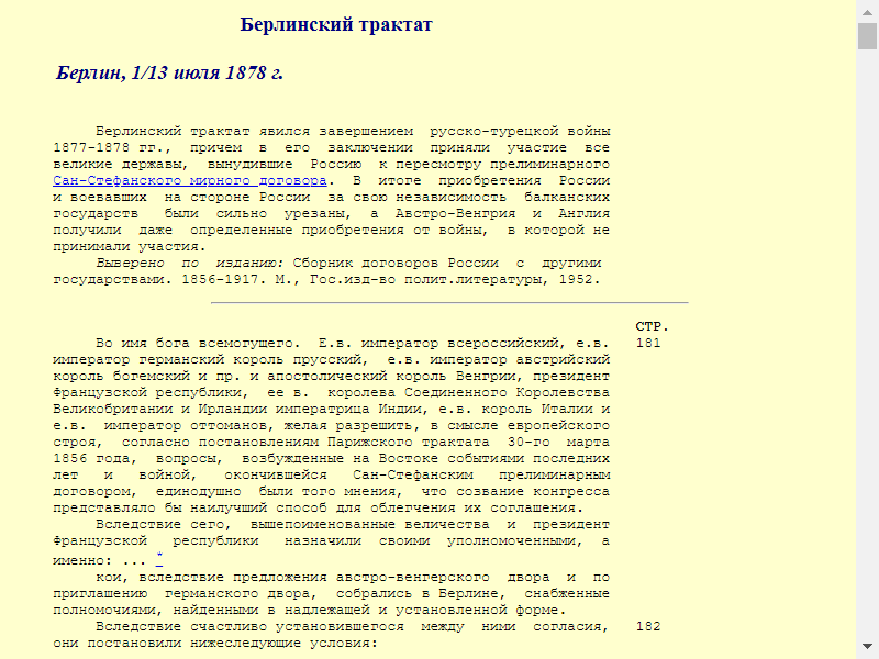 Берлинский трактат // Сборник договоров России с другими государствами. 1856–1917. М., 1952