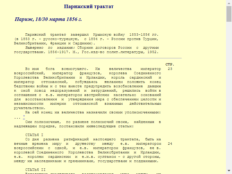 «Парижский трактат // Сборник договоров России с другими государствами. 1856–1917. М., 1952.»