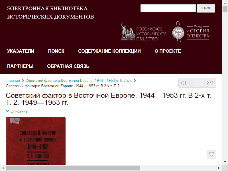 Советский фактор в Восточной Европе. 1944–1953 гг. Документы. Т. 2. 1949–1953 гг. / отв. ред. Т.В. Волокитина. М., 2002