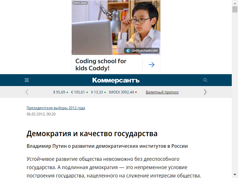 Путин В.В. Демократия и качество государства // Коммерсантъ. 2012. 6 февраля. № 20/П (4805)