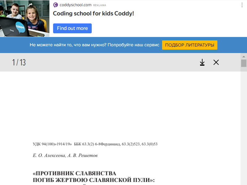 Алексеева Е.О., Решетов А.В. «Противник славянства погиб жертвою славянской пули»: реакция на убийство Франца Фердинанда в петербургских газетах // Studia Slavica et Balcanica Petropolitana. 2015. № 1
