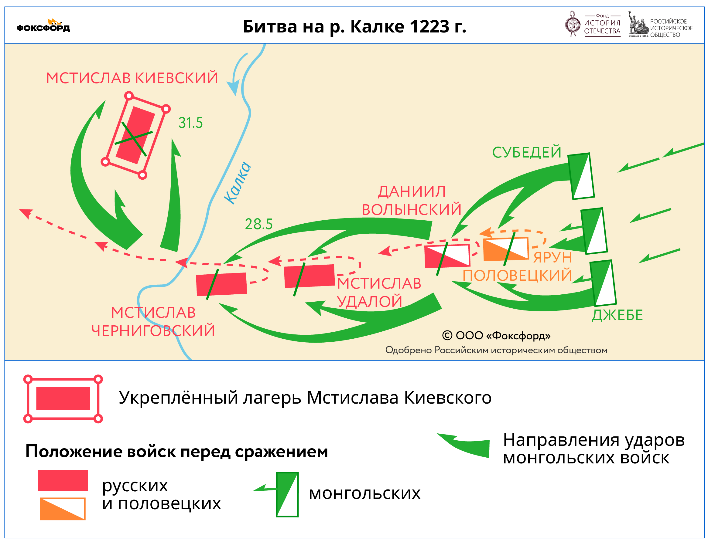 Карта битвы на Калке 1223 года.