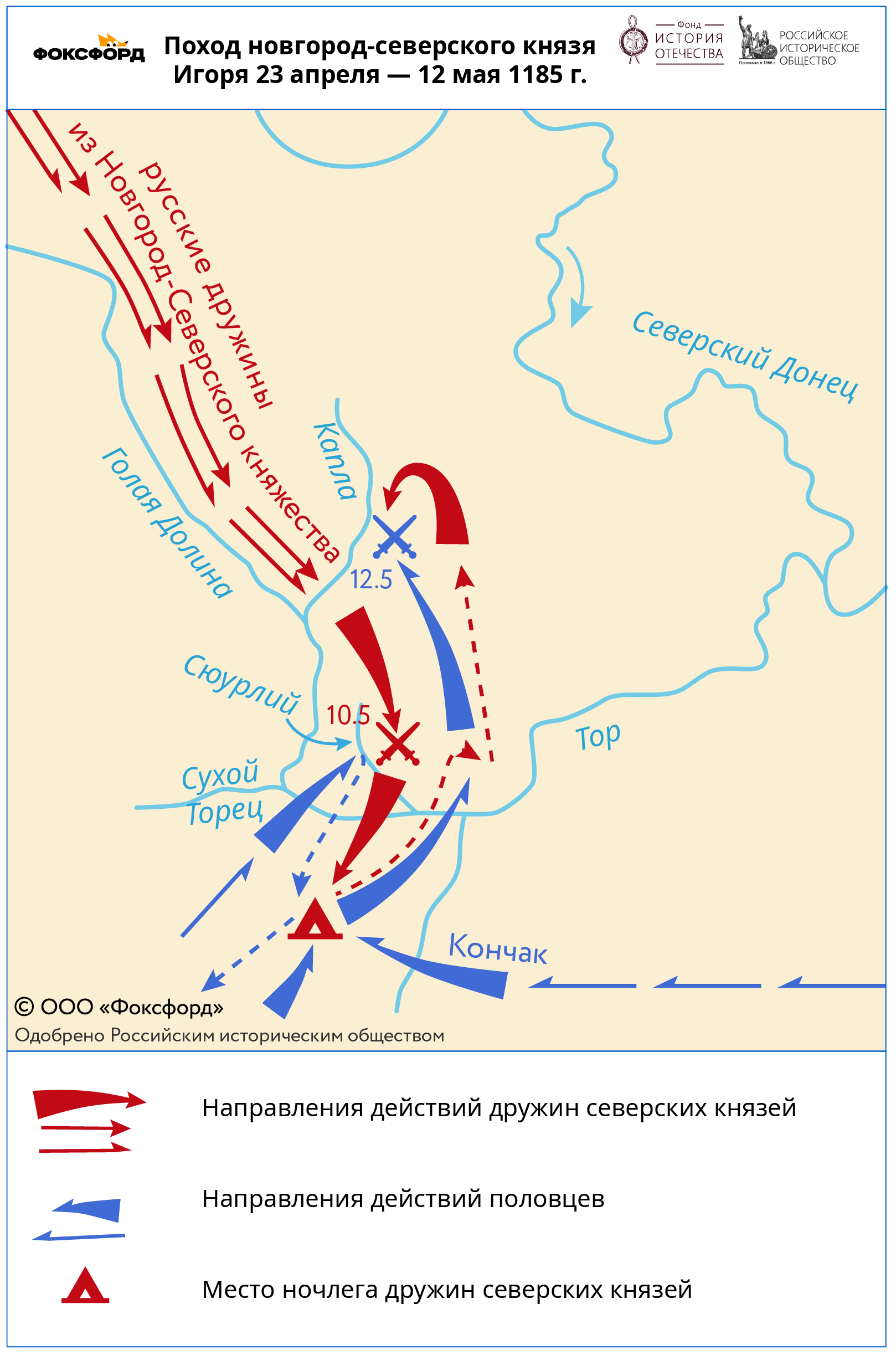 Карта похода князя новгород-северского князя Игоря в 1185 году.